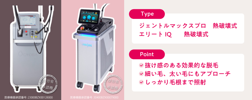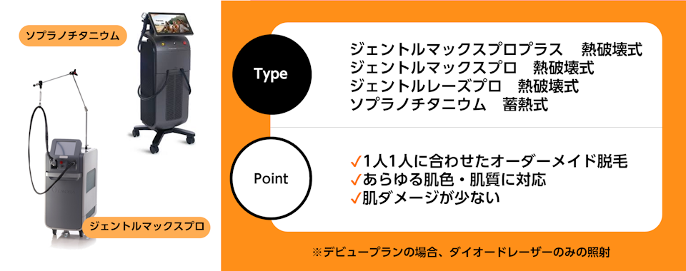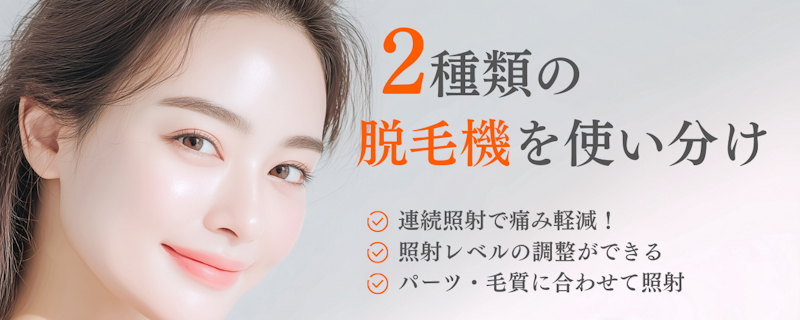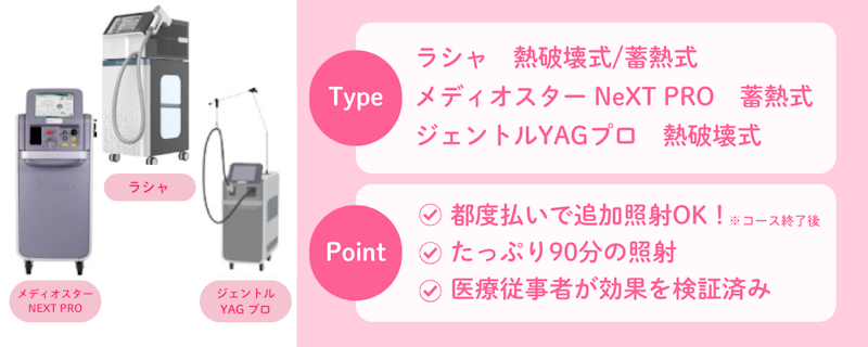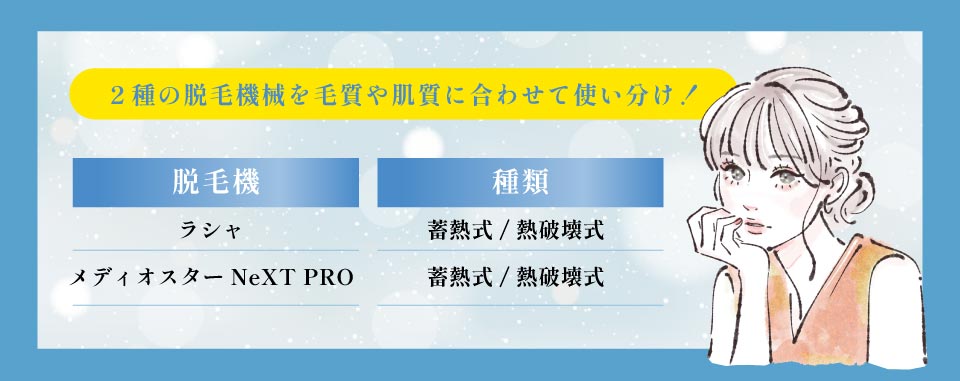 選び抜かれた3種の医療レーザー脱毛機で毛質・肌質に合わせて照射しています。